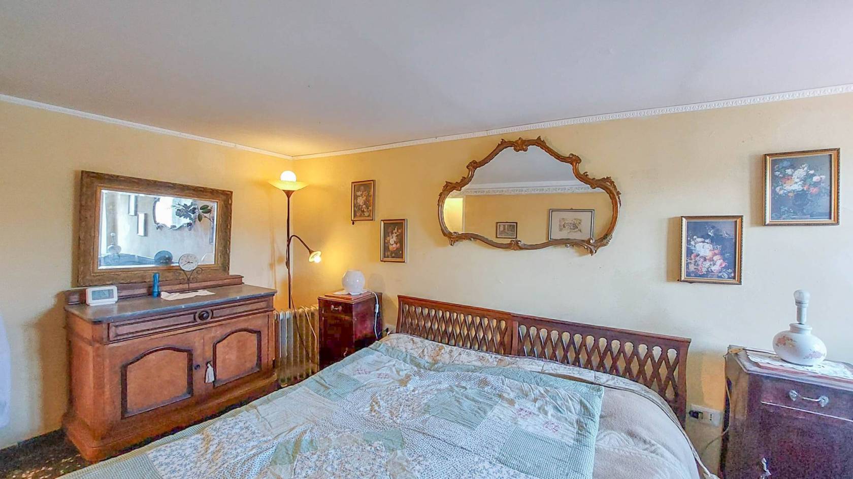Salendo al primo piano, ci accoglie una spaziosa camera da letto matrimoniale e un bagno ampio, perfetto per chi ama avere tutto lo spazio necessario per sé e per la famiglia. La luce naturale e la tranquillità rendono questo piano particolarmente piacevole.