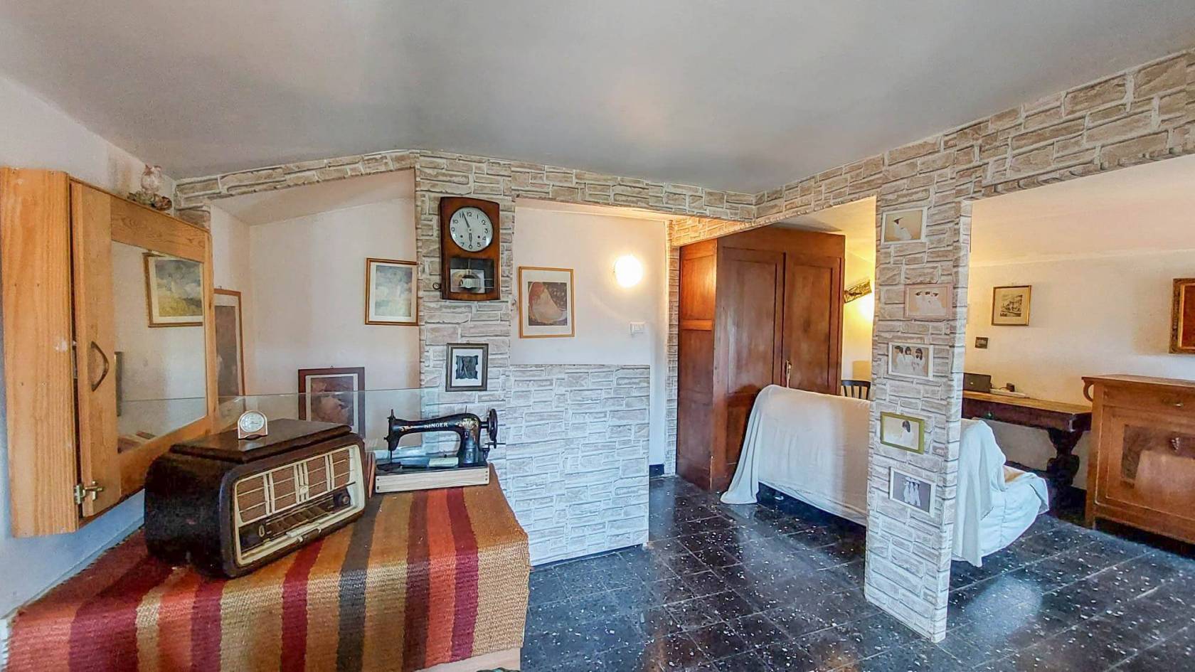 Il secondo piano, infine, offre un ambiente molto versatile: attualmente si presenta come una grande sala doppia, ma può facilmente essere riconvertito in due camere da letto, come in origine.