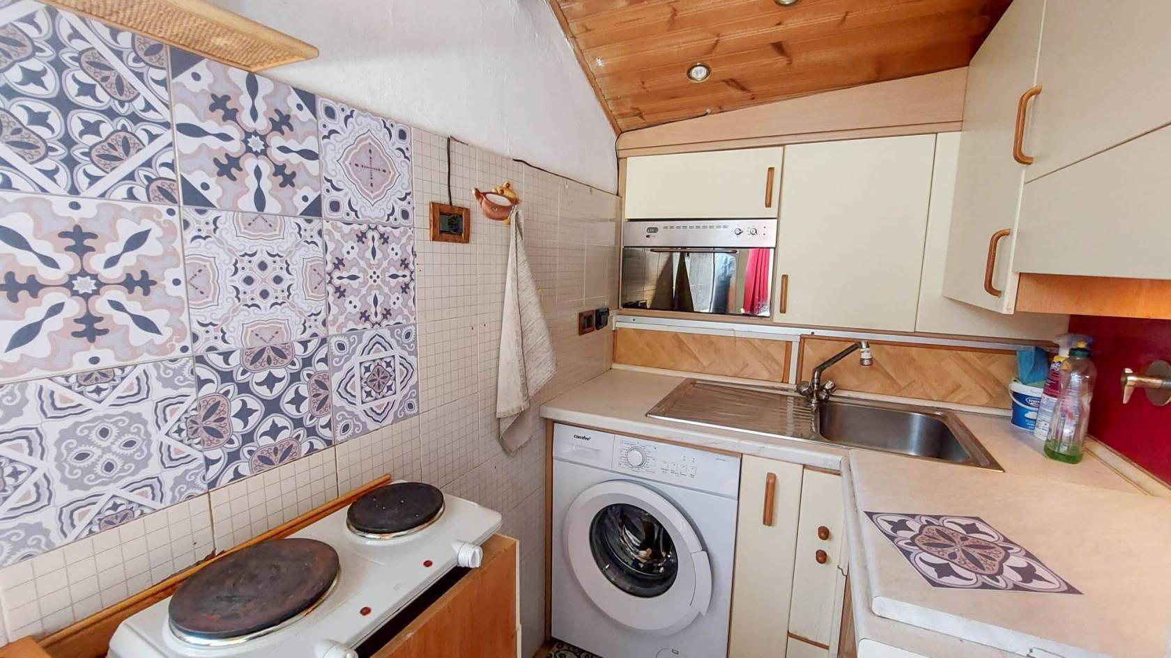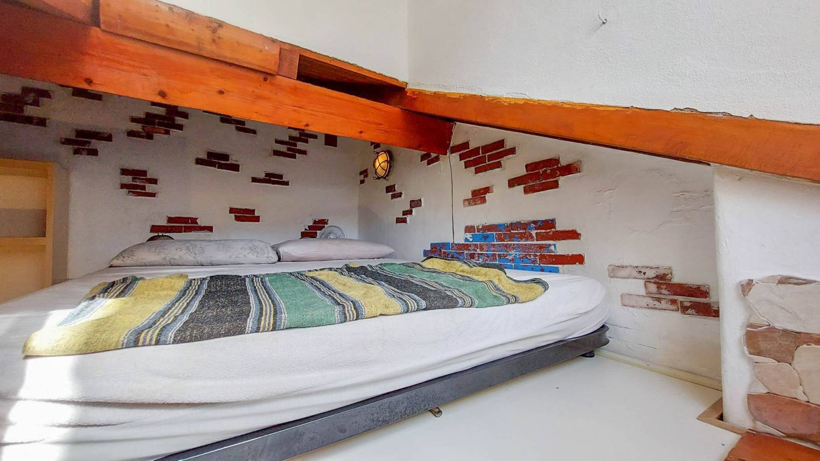 L'immobile è composto da un ingresso direttamente nella zona giorno con angolo cottura, bagno e un'ampia camera, attualmente arredata con un divano e televisore. La zona notte è ben organizzata grazie a una spaziosa cabina armadio soppalcata, al di sopra della quale si trova il letto matrimoniale.